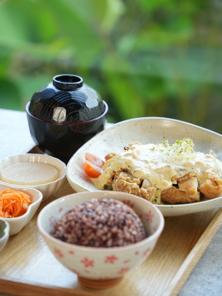 Crispy fried chicken topped with tangy nanban sauce and creamy homemade tartar.